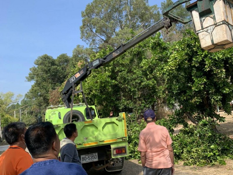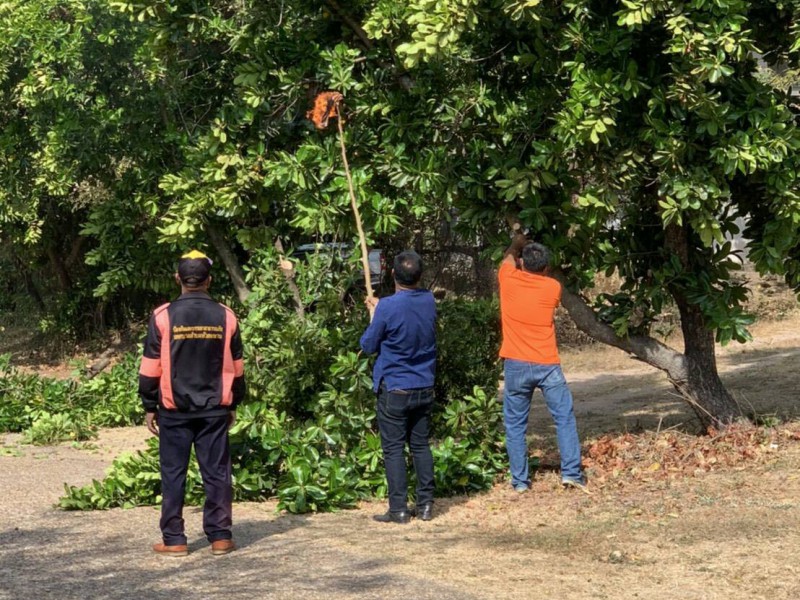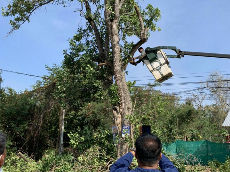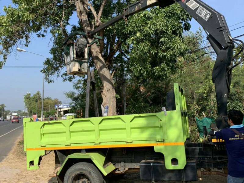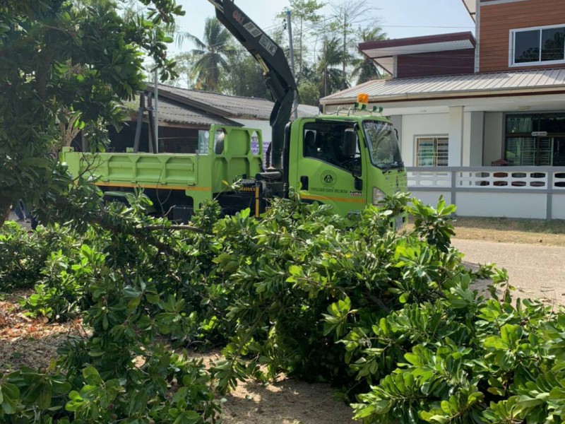 งานป้องกันฯ ทต.หัวตะพาน ลงพื้นที่ตัดต้นไม้ปรับปรุงภูมิทัศน์ถนนหลังห้องแถวตำรวจ สภ.หัวตะพาน
