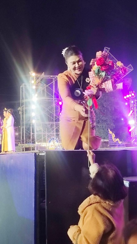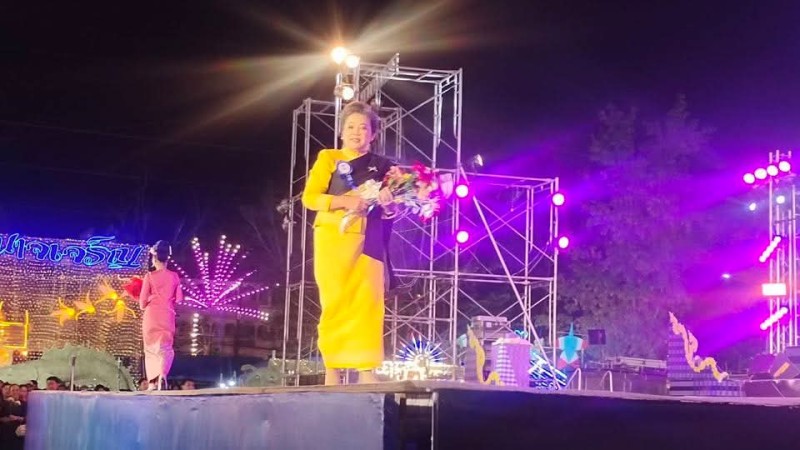 นางสำรวย สมพงษ์ นายกฯเทศมนตรีตำบลหัวตะพาน พร้อมด้วยนางบัวเรียน หน่อแก้ว รองนายกเทศมนตรี และ นางสาวศุภานัน อุดมศรี ร่วมเดินแบบผ้าไทยการกุศล ในงานประเพณีฮีตสิบสองและงานกาชาดจังหวัดอำนาจเจริญ ประจำปี 2568