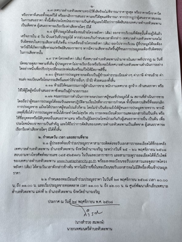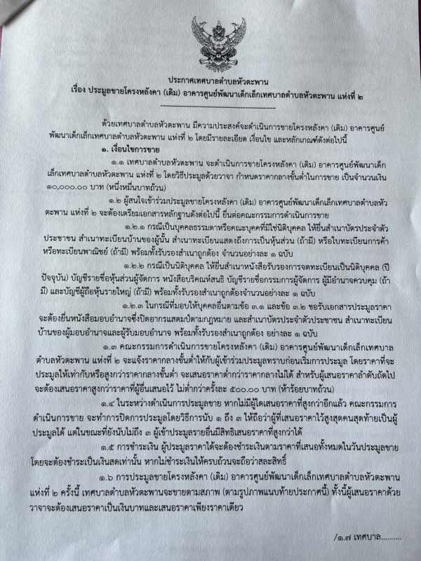 ประกาศเทศบาลตำบลหัวตะพาน เรื่อง ประมูลขายโครงหลังคา(เดิม) ศูนย์พัฒนาเด็กเล็กเทศบาลตำบลหัวตะพานแห่งที่ ๒